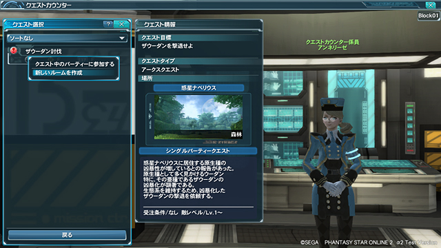 First you will see a quest type, クエストタイプ一覧, choose アークスクエスト for Arks Quests. You will then see your available quests. If you click on one of them you will see :