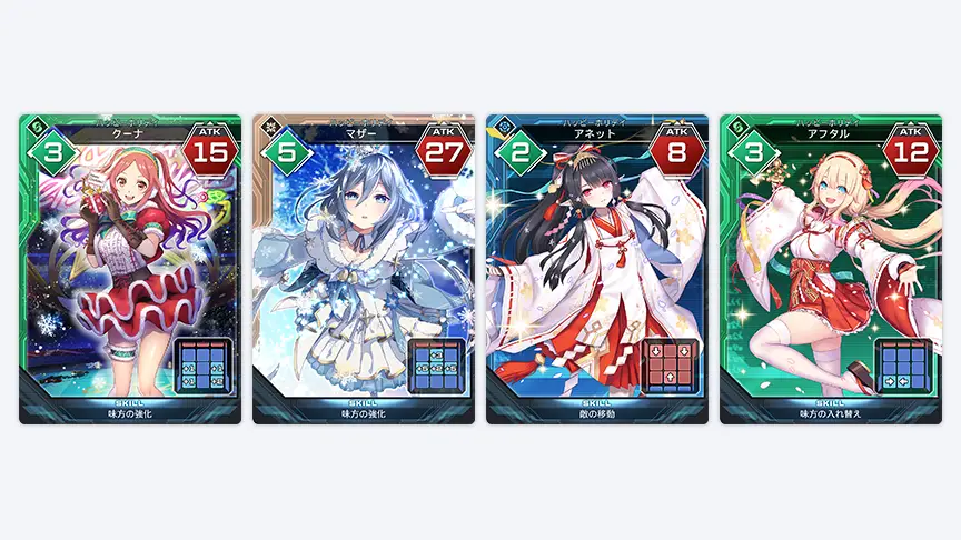 Receive exclusive holiday themed Line Strike cards of Quna, Mother, Annette, and Akhtar as drops.