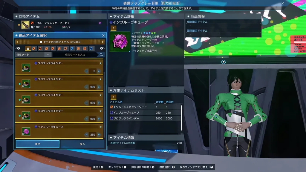 The required material item "Improve Cubes" can be obtained from Leciel Combat Analysis Survey and other future content. You'll need 250 of them along with 3000 Progregrinders for upgrading the Twel series.