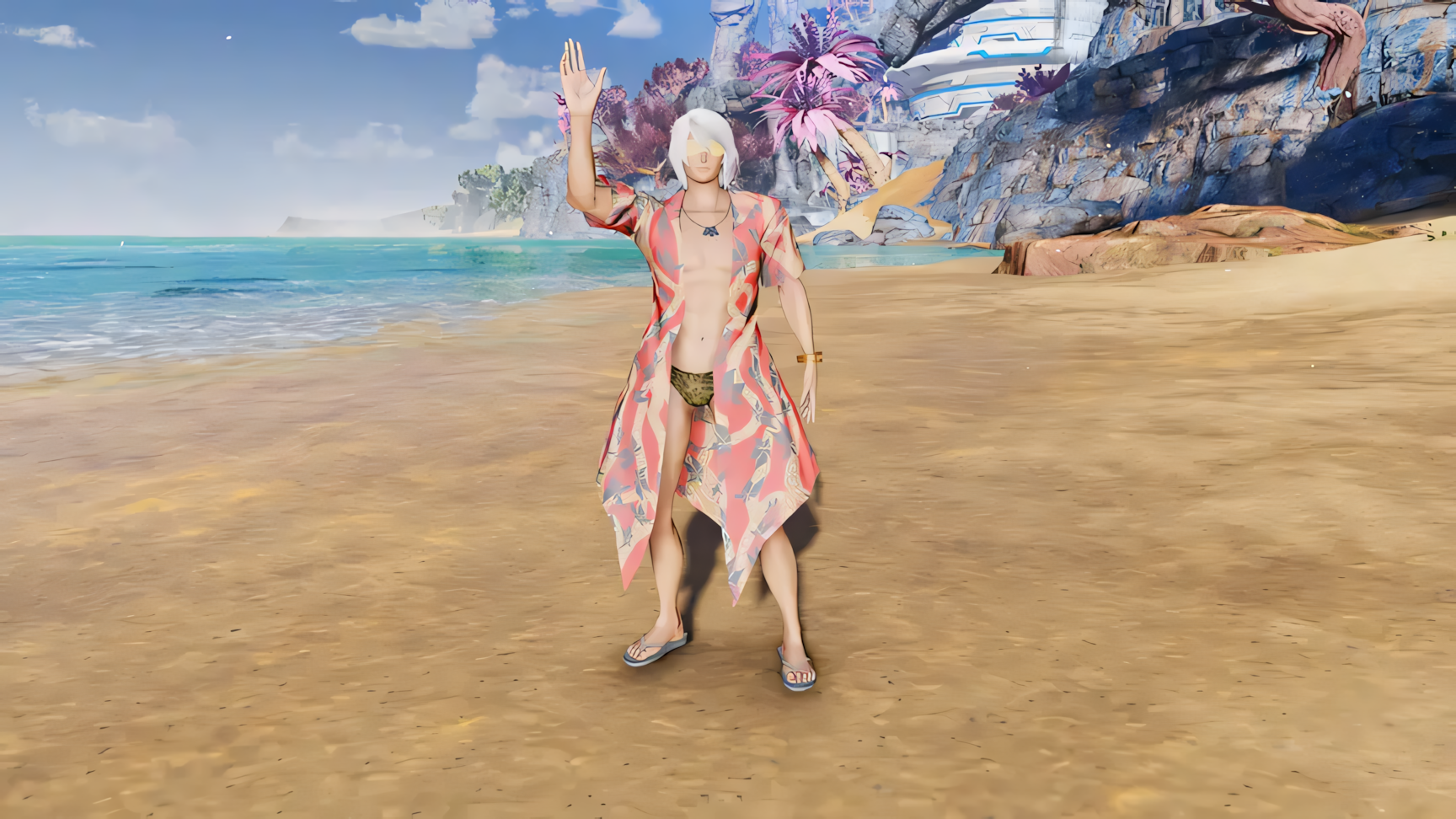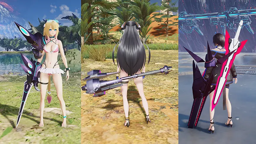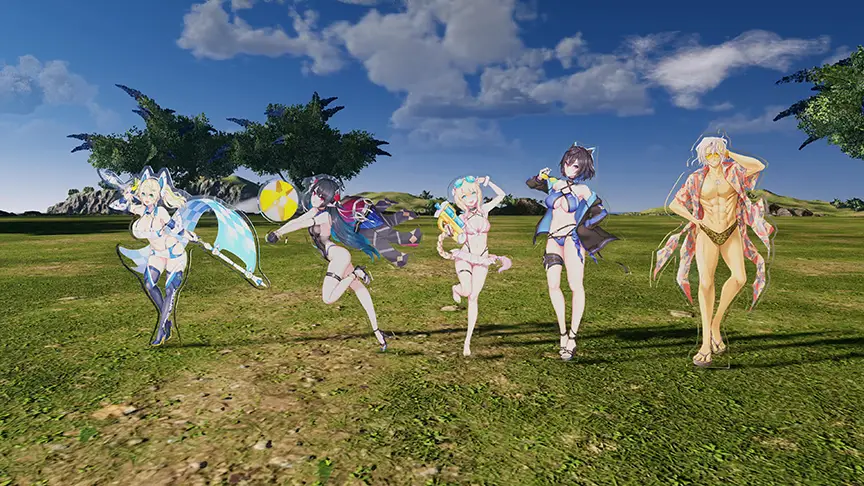 Dress up as Gené, Annette, Akhtal, Khorshid, and Bruno from PSO2es in their Summer Vacation costumes.