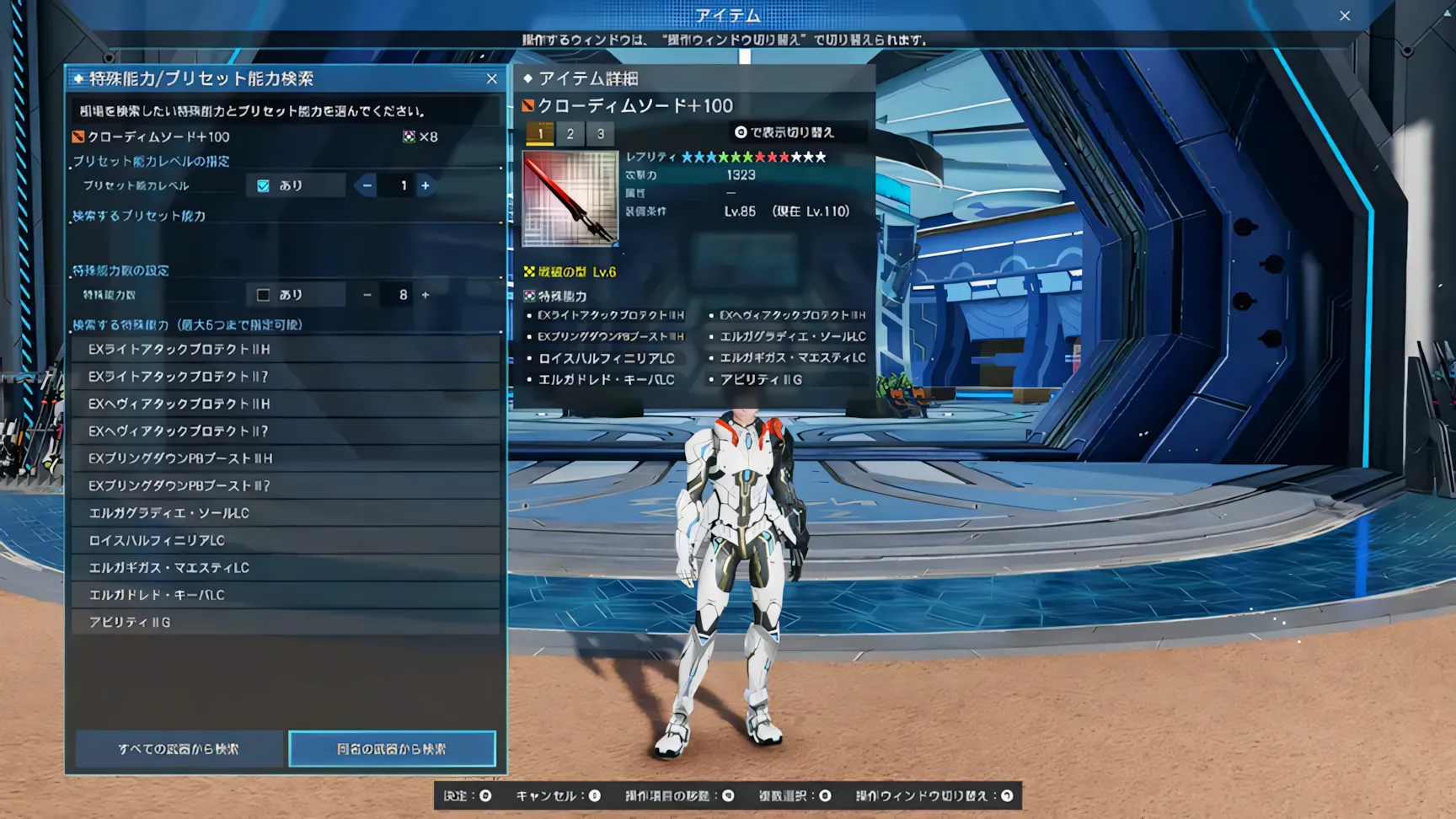 - If a weapon has an EX Special Ability, selecting the item with the "?" by it will change the search scope to the entire series.