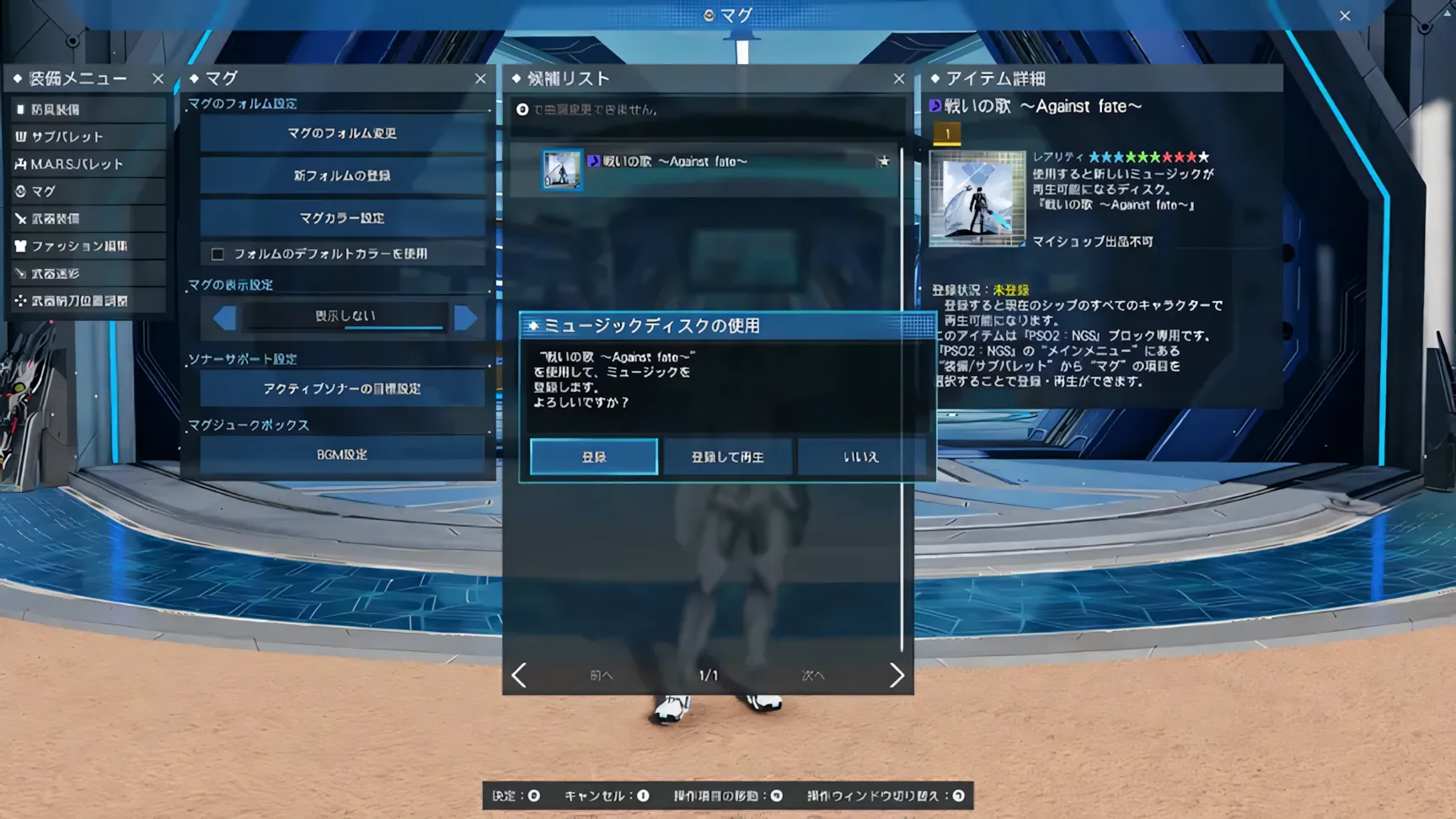 - You can register a new form, apply after adding, and confirm BGM playback from a single screen when registering new Mag Forms and Music Discs.