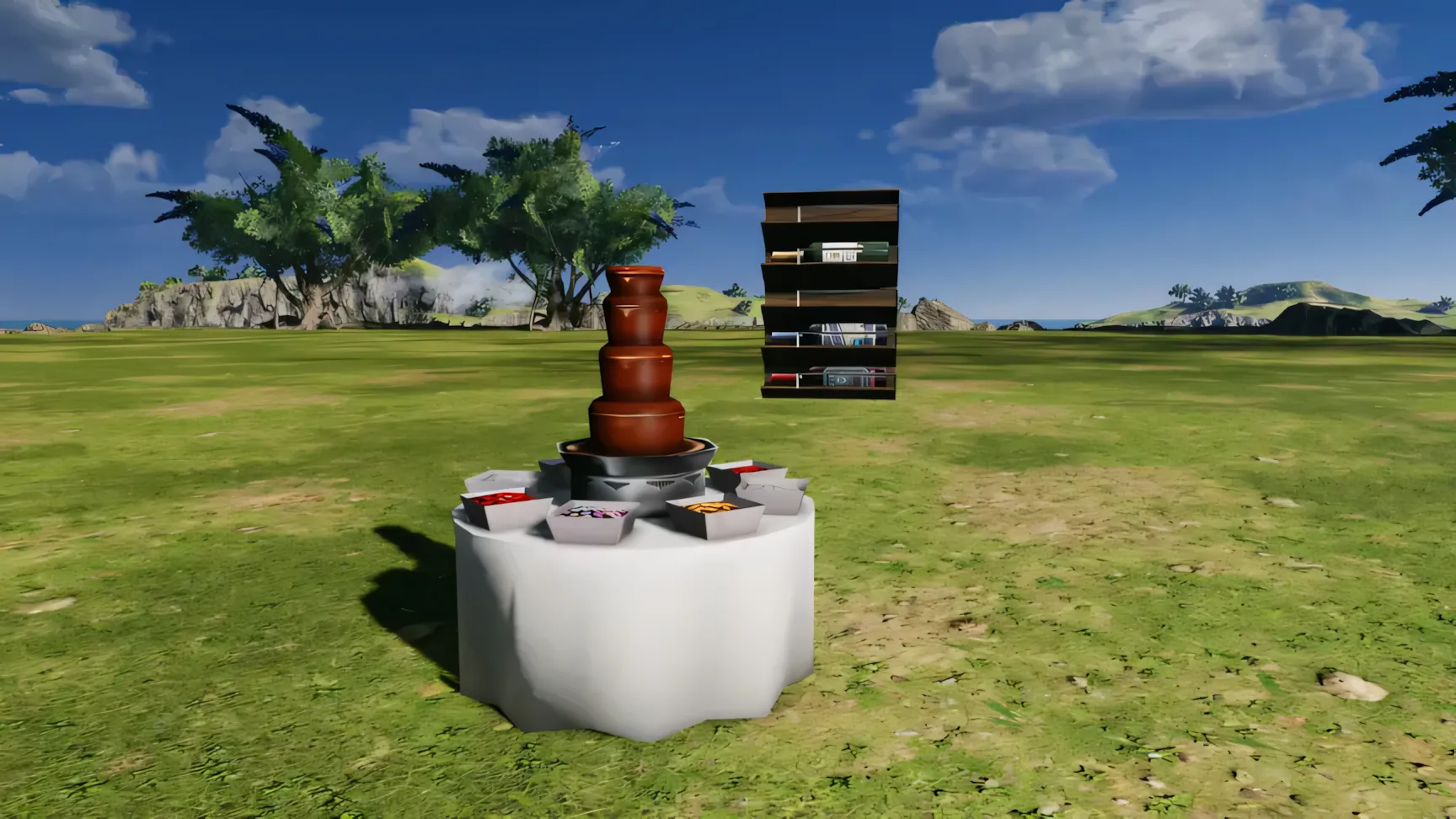 Access the Seasonal Point Exchange Shop for the Chocolate Fountain, Wall Wine Rack, and the Dezas Rifle accessory.