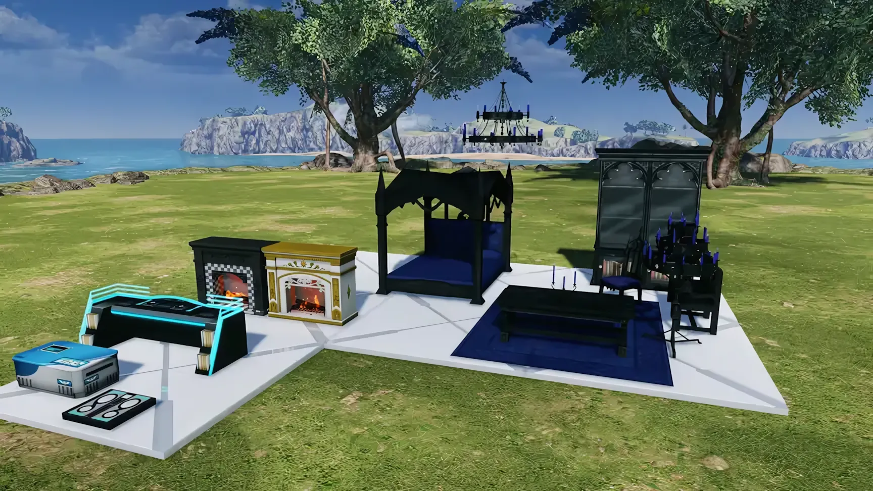 Creative Space will have color variation items like [Elegant Table C], [Elegant Bench C], and fireplace build parts.