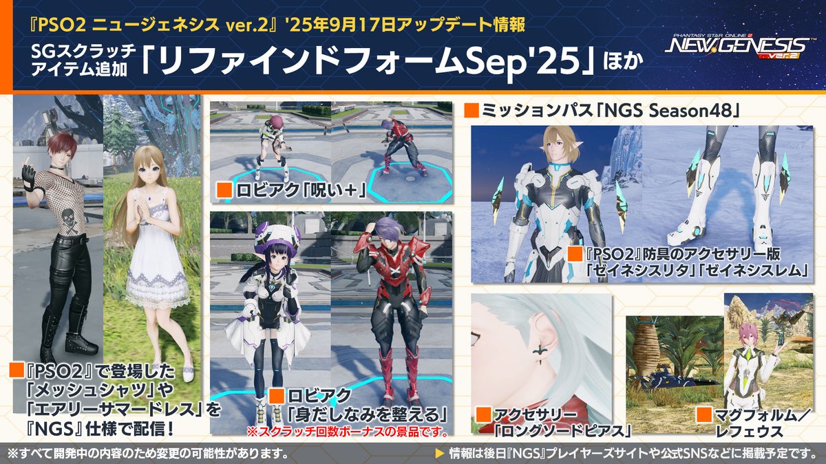 • Mesh Shirt and Airy Summer Dress will come back with NGS Specs.