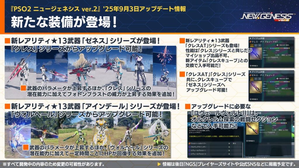 • The ★13 "Zenith" weapon series will make their debut, upgraded from the Cres series.