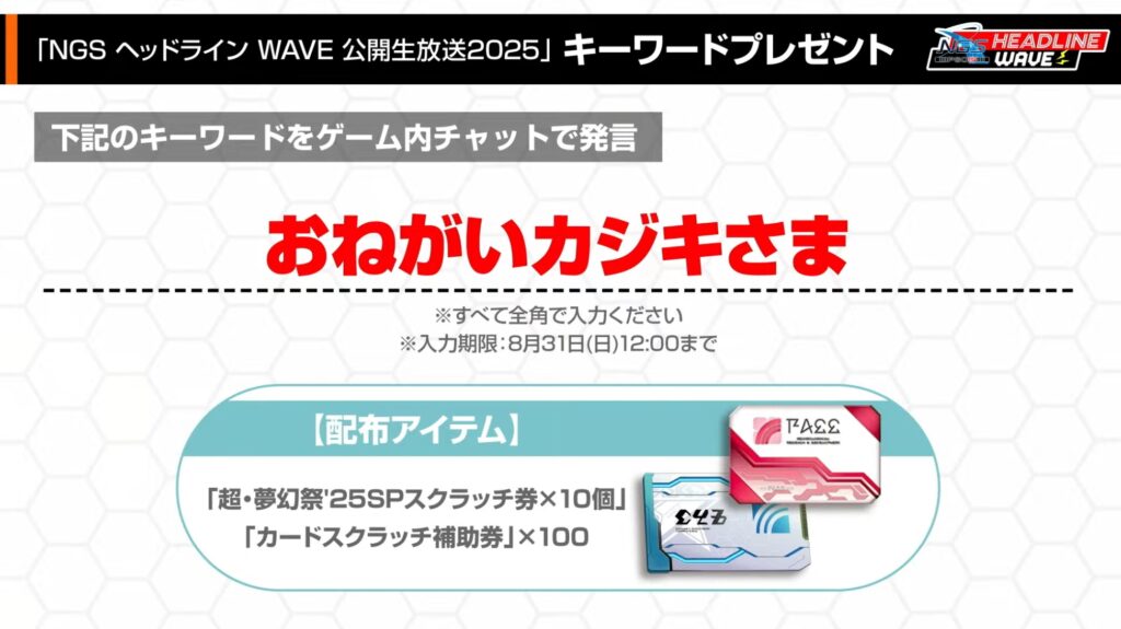 • Say the phrase to receive 10 Super Phantasy Festival SP Scratch Tickets and 100 Card Scratch Vouchers.