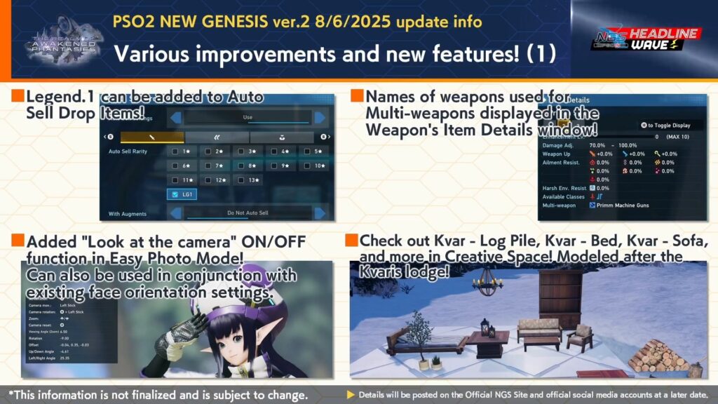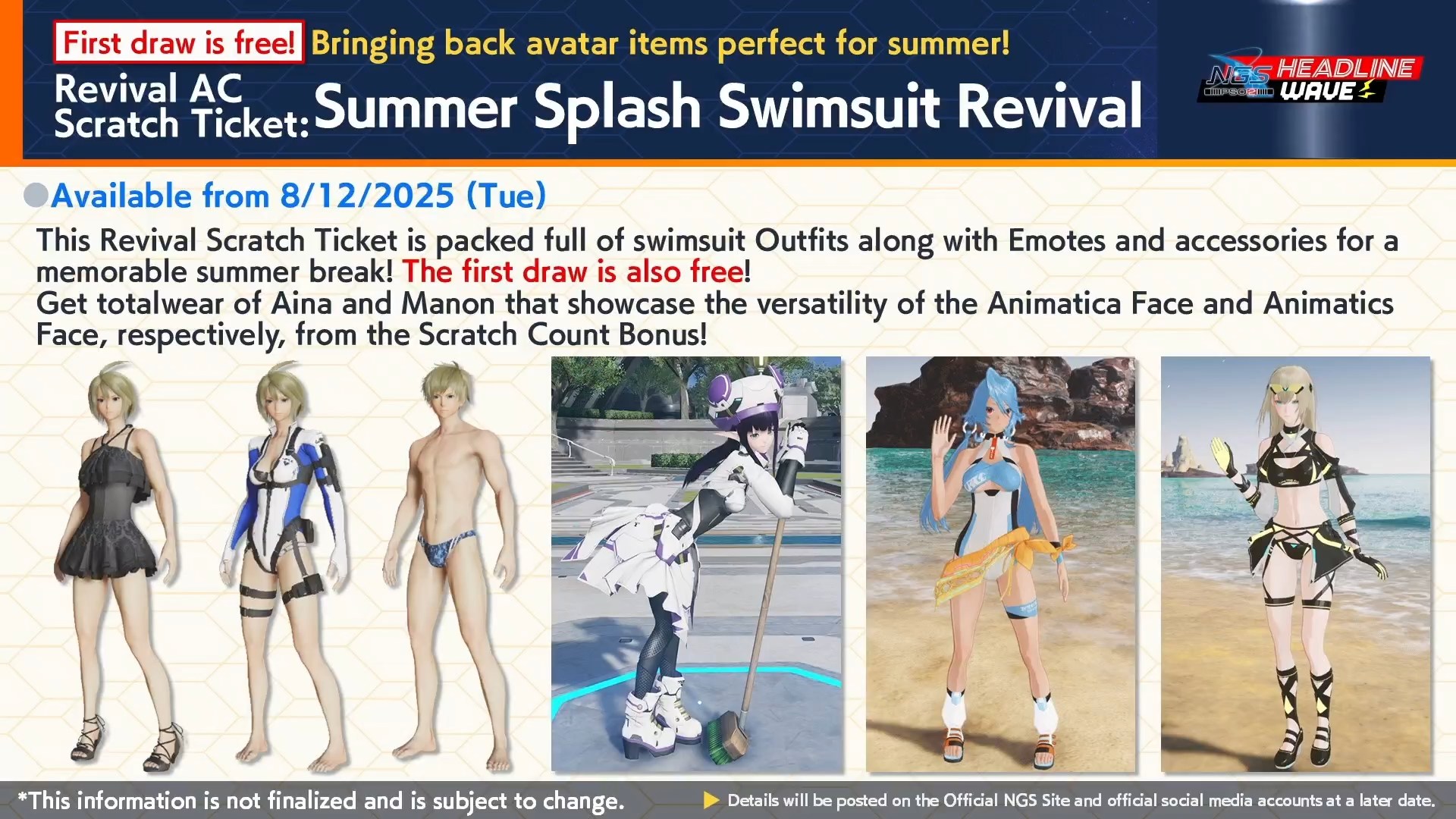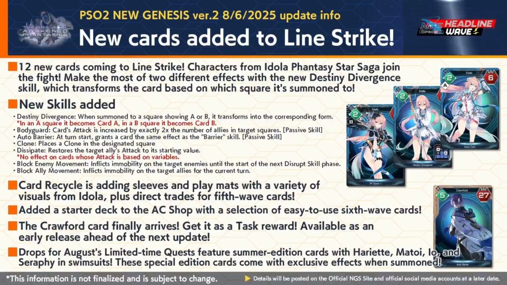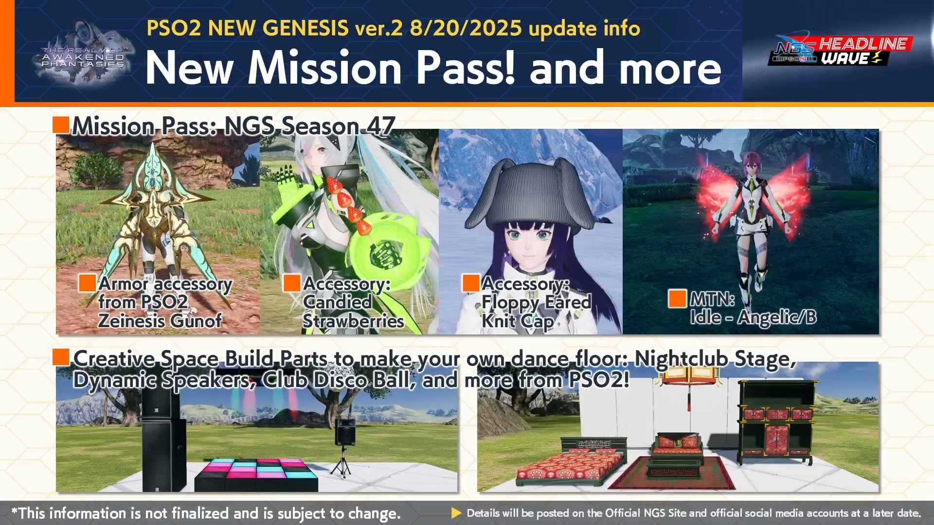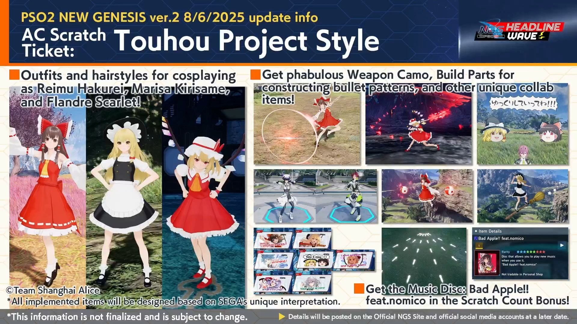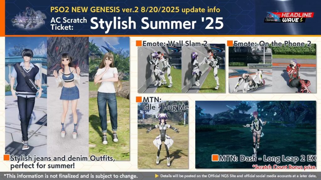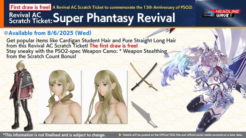 - PSO2 Spec SG Scratch prizes, and color variations yet to be released in NGS for certain outfits.