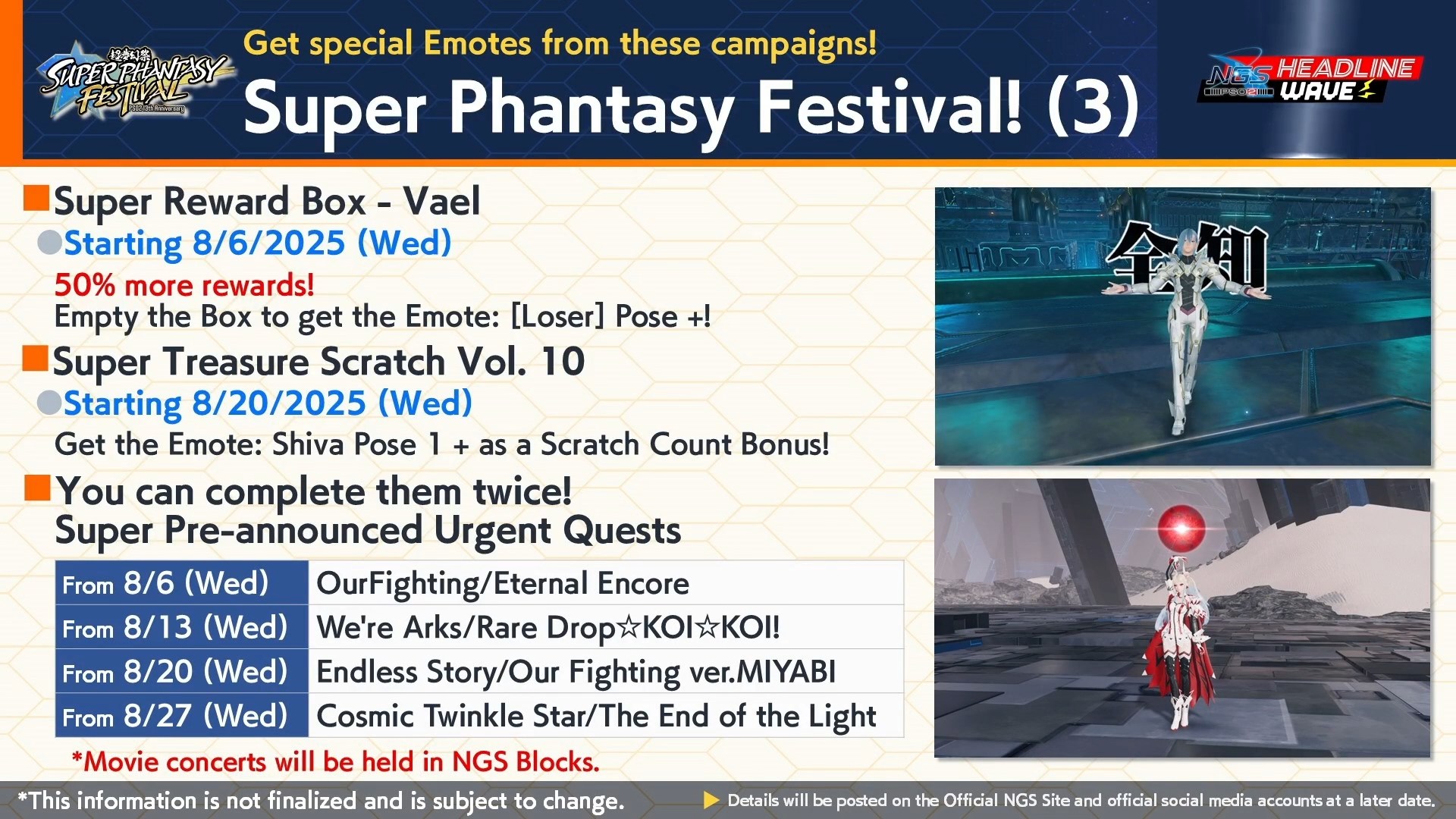 - Super Phantasy Festival '25 Scratch contains NGS versions of Shiva and Loser's outfits, a weapon camo Guide to the Annihilation, and Music Disc featuring Shiva character songs. The SP Scratch items will be added to the regular SP Scratch lineup, but the items will be harder to get. You can get Super Phantasy Festival SP Scratch tickets from the Seasonal Point Exchange Shop and Limited-Time Quests.