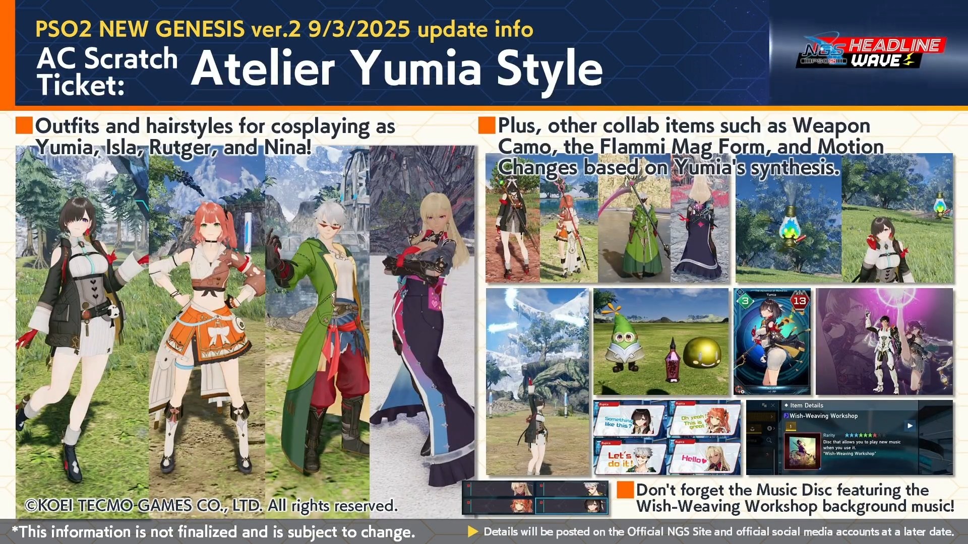 - Complete Limited Time Tasks to earn PSO2-Spec accessories like Mini Devil Wings, Arkuma Hairband, and Gothic Claws Black.