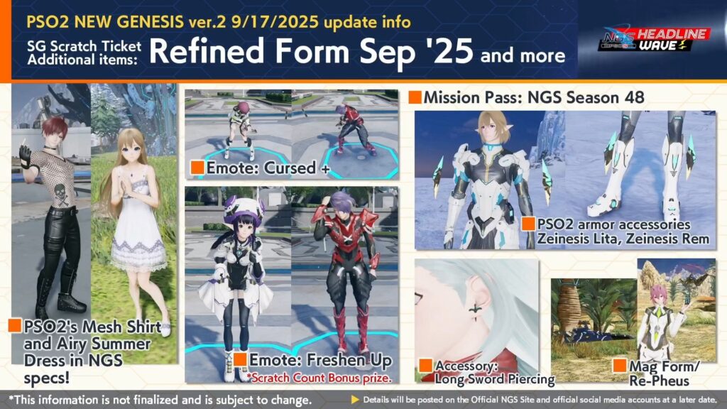 - Contains PSO2's Mesh Shirt and Airy Summer Dress in NGS specs!